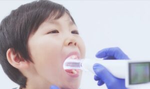 インフルエンザ診断は、一般的には鼻に綿棒を入れて「グリグリ」する抗原検査を実施して行います。当院では、それに加えて11月から喉をカメラで撮影してAIが判定する機器(nodoca)を導入しました。nodocaは6歳以上で、5秒程度大きく口を開けることが可能な方が適応となります。舌を押さえるので、舌圧子が苦手なお子さんは不適です。nodocaは特に発症初期に有用です。発症当日や翌日など、まだ鼻にインフルエンザウイルスの抗原が少ない時期にも効果を発揮します。しかし、時間が経つと従来の綿棒での検査の方がやや優れています。